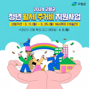 [경제/사회] 청년의 안정적 정주여건 조성을 위한 고령군 청년 월세 주거비 지원사업 대상자 모집
