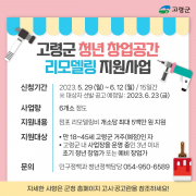 [경제/사회] 청년일자리 창출 및 지역경제 활성화를 위한 고령군 청년 창업공간 리모델링 지원사업 참여자 모집