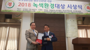 자유한국당 농림축수산특별위원회 이완영 위원장이 지난 18일 한국언론재단 프레스센터 프레스클럽에서 열린 2018 녹색환경대상에서 녹색환경대상 최
