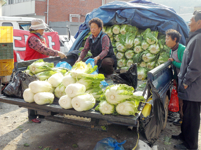 김장 배추 흥정하는 장터 풍경