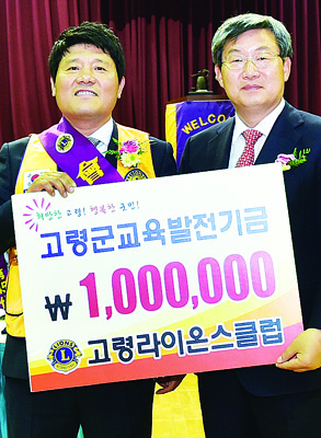 |  | | | ↑↑ 교육발전기금 전달에 앞서 이홍기 신임회장(왼쪽)이 곽용환 군수와 함께 웃으며 포즈를 취하고 있다. | | ⓒ 고령군민신문 | | |