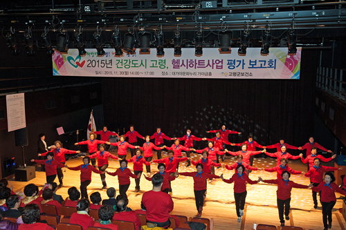 이날 평 가회 식 전공연으로 고령고등학교밴드 동아리 초청공연과 하반기 ‘건강지도자 역량강화 프로그램’에 참석했던 회원 85명이 그동안 배운 건강체조 시연을 하였으 며 헬시하트회 성정숙회장은 ‘행복한 동행,나의 건강지킴 헬시하트’라는 주제로 2015 년 헬시하트추진에 대한 역할과 성과를 돌아보는 시간과 향후 사업 활성화 방안을 제 시하는 발표시간도 가졌다.