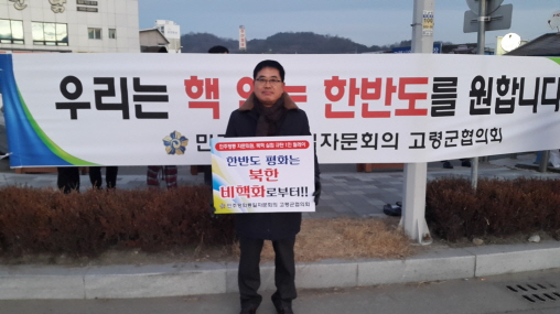 “우리는 핵무기 없는 통일을 원한다” 민주평통 고령군협의회 자문위원, 북핵 실험 규탄 1인 릴레이
