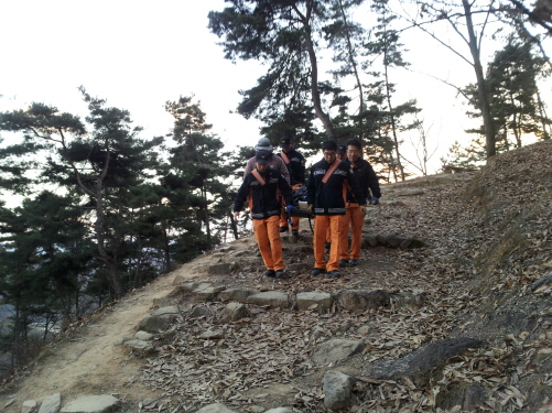 현장에 도착한 119구조대 및 구급대는 저체온증 및 좌측 발목 골절이 의심돼 응급처치 후 산악용 들것을 이용해 안전하게 구조 후 인근 병원으로 이송조치 했다.