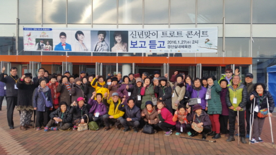 고령군 장애인 단체 회원 160여명이 지난달 26일 경산시 경산실내체육관에서 열린 ‘2015경북 문화더누리 프로그램(신년맞이 트로트 콘서트)’에 참가했다,
