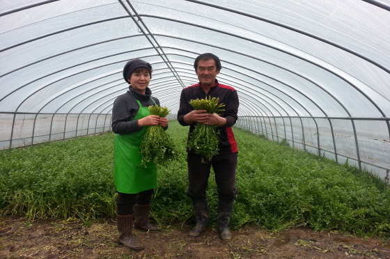 가야산참샘영농조합법인(대표 진종호)은 9명의 회원으로 1.3ha의 미나리 하우스에서 20톤을 생산하며, 비닐하우스 1동당(660㎡) 900여만원의 고소득을 올리고 있다. 현재 생식용 미나리는 1kg에 1만원에 10,000원에 판매되고 있다.