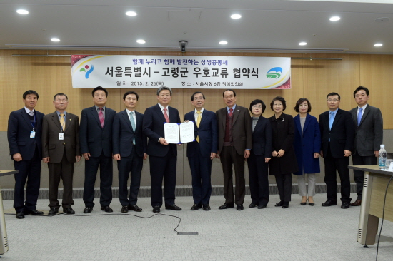 서울시-고령군 우호교류협약 1년, 성과와 기대 ! 문화에서 경제까지 … 지자체간 상생협력 성공모델 지난해 2월 서울시와 고령군은 안정적인 농산물 판로개척과 지역 간 문화관광교류를 통한 상생발전을 위해 우호교류협약을 체결했다. 협약은 곽용환 군수의 민선 6기 군정의 핵심사업인 고령경제 4040프로젝트와 대가야 문화융성 실현을 위해 국내 최대 소비도시인 서울시에 제안하고 서울시가 이를 수용하면서 이뤄졌다. 주요 협약내용은 ▲고령군 농·특산물 홍보를 위한 협력 ▲새로운 삶을 개척하는 맞춤형 시민 귀농·귀촌 지원 ▲지역의 특화된 문화관광자원의 교류 ▲한성백제-대가야박물관 상호교류 ▲청소년 역사·문화·농촌체험 활성화 등을 추진하는 내용을 담고 있다
