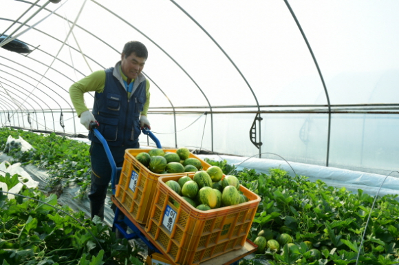 전국 최고의 맛을 자랑하는 성산 멜론이 드디어 첫 출하됐다. 성산면 기산리의 이충재 씨가 지난 22일 파파야멜론 130박스/10kg를 출하했다.