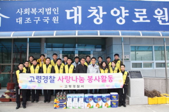 고령경찰서가 설 명절을 앞둔 지난 19일 쌍림면 사할린 영주 귀국 어르신들이 거주하는 대창양로원을 방문해 주변 환경미화, 말벗봉사, 운동보조 등의 봉사활동을 펼쳤다.