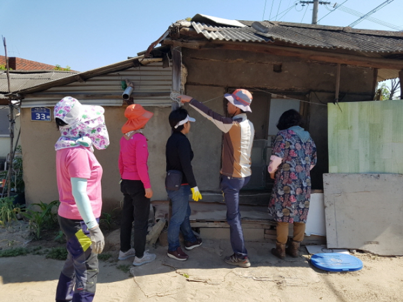 이날 회원들은 낡은 물받이를 걷어내고 보수해 줬으며 낡은 방충망도 새것으로 교체했다. 해당 어르신들은 “비만 오면 걱정이 되어 잠도 제대로 자지 못했다”며 “수리할 엄두를 못냈는데 이번에 물받이를 고쳐줘 올여름에는 비가와도 걱정없겠다”고 감사의 마음을 표했다.
