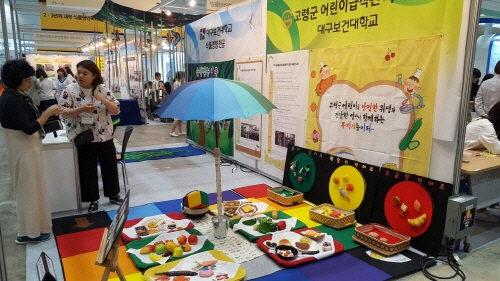 고령군 어린이급식관리지원센터(센터장 김미옥, 대구보건대 식품영양전공 교수)가 지난달 코엑스에서 열리는 2017년 우수급식·외식산업전에 참가해 ‘어린이 식습관 교육은 무지개영양놀이터로 배우자’라는 주제로 영양교구를 선보였다.
