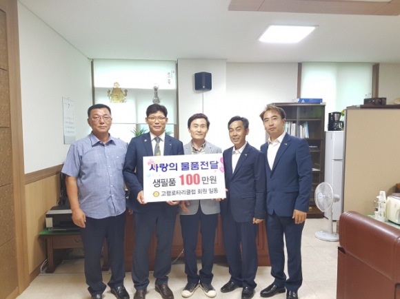고령로터리클럽(회장 김종수)이 지난 1일 대가야읍사무소를 방문, 관내 어려운 이웃을 위해 사랑의 물품(100만원 상당)을 전달했다.