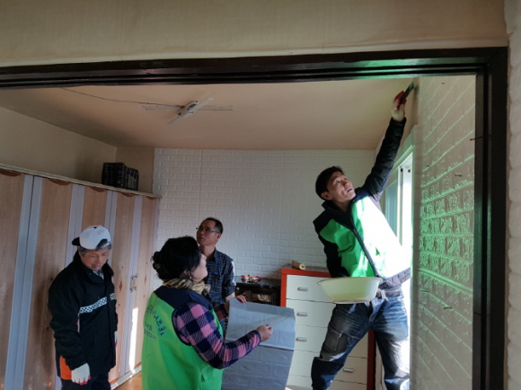 이날 협의체 위원들이 본인들의 생업이 바쁜 가운데에서도 잠시 시간을 내어서 방과 거실도배를 직접하고 청소를 했다.