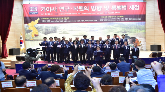 또 가야문화권 지역개발을 위한 포럼’(회장 주승용 국회의원)이 주최하고 가야문화권 지역발전 시장군수협의회(의장 곽용환 군수) 주관으로 ‘가야문화권 전시회 및 세미나’가 지난 8월 31일 국회의원회관에서 가야문화권 국회의원, 및 자치단체장, 주민 등 600여명이 참석한 가운데 개최됐다. 세미나에서는 영호남 통합을 위한 공동결의문 낭독을 통해 가야문화권의 모든 시군이 국정과제로 선정된 가야문화권 조사·연구 및 정비를 위해 뜻을 모았다. 또한 지방화·세계화 시대를 맞아 지역 균형발전과 영호남 동반성장을 위해『가야(역사)문화권 개발 및 지원에 관한 특별법』제정에 적극 협조해 줄 것을 정부에 촉구했다.