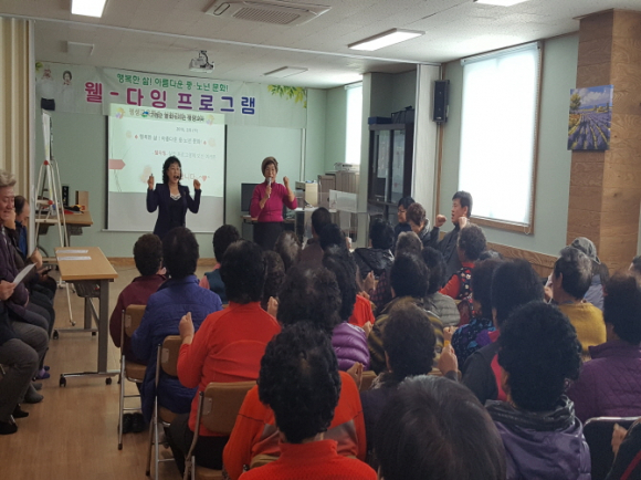 고령군이 지난 3일 다산면 노곡리 마을회관에서 ‘웰다잉’ 교육 프로그램을 개강했다. 이날 개강식에서는 1부 내빈소개 및 강사소개, 강의계획 발표에 이어 2부 행사 에는 각 강사들이 준비한 마술 및 민요체조와 라인댄스 등을 선보여 개강식에 모인 수강생들로부터 큰 호응을 받았다.
