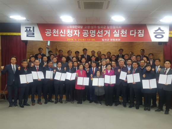 6.13 지방선거 자유한국당 고령군·성주군·칠곡군 공천에 신청한 기초단체장, 광역.기초의원 경선출마자들이 참석한 가운데 공명선거 실천 다짐 서약식이 열렸다.