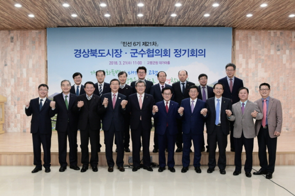 경상북도시장군수협의회 정기회의가 지난 21일 시장·군수, 부단체장, 경북도 실·국장, 관계 공무원 등 100여명이 참석한 가운데 고령군청 대가야홀에서 개최됐다. 회의는 협의회장인 한동수 청송 군수의 인사말, 곽용환 군수의 환영사와 이영희 고령군의회 의장의 축사가 있었다.