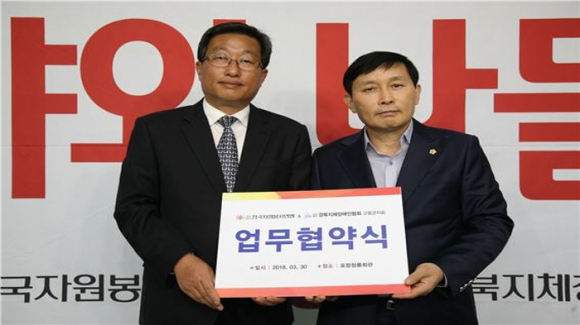 사)경북지체장애인협회고령군지회와 (사)전국자원봉사연맹이 지난달 30일 포항 청룡회관에서 업무협약(MOU)을 체결했다.