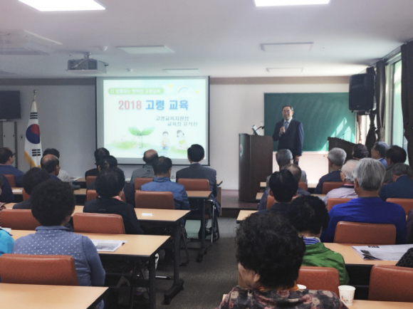 고령교육지원청 윤석찬 교육장이 노인대학원생 170여명을 대상으로 ‘행복한 100세 시대를 여는 희망 소나타’라는 주제로 특별강연을 했다.