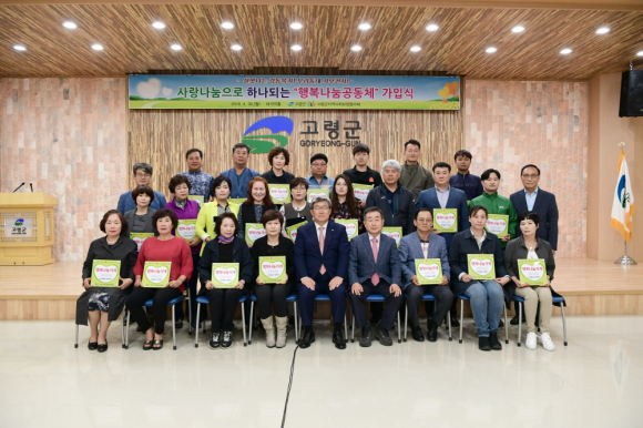 고령군이 최근 군청 대가야홀에서 고령군지역사회보장협의체와 함께 2018년 신규사업으로 실시하고 있는 행복나눔 공동체사업 협약체결 및 현판 전달식을 가졌다.
