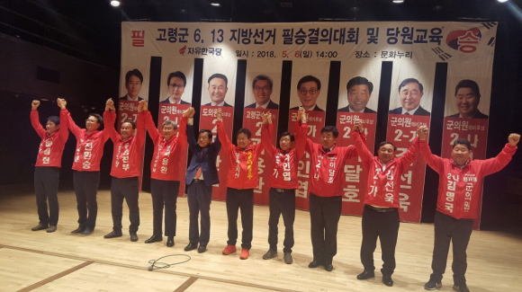 자유한국당 공천자들 필승 의지 다져 고령군 6·13 지방선거 필승 결의대회 열려