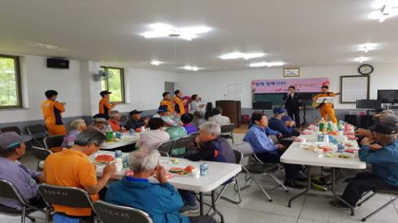 이날 사랑봉사단은 △할매할배의 날 운영취지 안내 △어르신의 혈압, 당뇨 측정 등 건강관리체크 △주택용 소방시설 설치 홍보 및 소화기, 감지기 기증 △화기취급 주의 당부 및 119신고 요령 등 소소심 교육 △119 어르신 안전퀴즈 쇼 △119소방대원 및 의용소방대원 재능공연 등 다채로운 프로그램을 준비해 호평을 받았다.