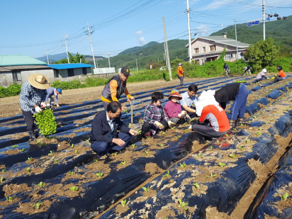 쌍림면새마을회(지도자협의회장 이은주, 부녀회장 최정연)가 지난 4일 남녀 지도자 20여명이 참여한 가운데 송림2리 소재 임대농지 600여평에 올 겨울 사랑의 김장 김치담그기 행사에 사용 할 배추모종 정식작업을 했다. 쌍림면 새마을회는 매년 3천포기가 넘는 배추모종을 직접심고, 수확해 연말에 김장 김치를 담가 독거노인 등 저소득층 불우이웃에 따뜻한 나눔의 정을 실천 해 오고 있다. 이날 이은주 협의회장은 “어려운 이웃에게 나눠 줄 맛있는 김장김치를 생각하며, 바쁘고 힘들지만 정성의 손길로 배추 모종을 심어 더 많은 이웃에게 나눌 수 있도록 풍성한 수확을 기대한다”고 말했다. 정준홍 쌍림면장은 “이렇게 직접 재배한 배추로 매년 겨울 직접 김장김치를 담아 이웃사랑을 실천하는 새마을회원들에게 깊은 감사의 인사를 전한다”고 말했다.