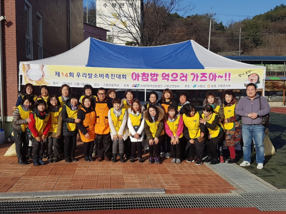 한국여성농업인 고령군연합회(회장 박순선) 주관으로 제14회 우리 쌀 소비촉진 행사가 회원과 학생 및 학부형 등 300여명이 참석한 가운데 지난 5일 고령초등학교에서 개최됐다. 행사는 초등학생들의 식생활개선을 위해 초등학교 학예회 일정과 맞춰서 진행됐다. 기존 주식으로써의 쌀 소비 촉진뿐만 아니라 쌀을 이용한 여러 가지 간식을 선보여, 페스트 푸드에 익숙해져가는 어린이들의 입맛에 우리 쌀의 우수성, 영양과 맛을 소개해 어린이뿐만 아니라 학부형에게도 큰 호응을 받았다. 또한 쌀을 이용한 전통음식(인절미, 백설기, 가래떡, 식혜 등) 및 간식용 가공식품(쌀 씨리얼 등)을 전시 및 시식과 비빔주먹밥 만들기 체험행사도 병행됐다. 여성농업인으로 구성된 한여농고령군연합회는 110여명의 회원이 전문경영인으로서 농업경영의 합리화와 과학화 및 여성농업인의 권익과 지위 향상을 위해 조직됐다. 국민의 먹거리를 책임지는 주체이고, 농촌 문화를 지키는 파수꾼으로서 봉사활동과 영농신기술 습득으로 강소농으로의 꿈을 키우고 있는 단체이다.