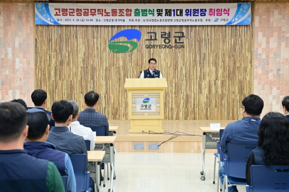 [고령군민신문=이상희기자] 전국연합노동조합연맹 고령군청공무직노동조합(위원장 임웅배)은 4월 28일(금) 16시 고령군청 대가야홀에서 고령군청공무직노동조합 출범식 및 제1대 위원장 취임식을 갖고 본격적인 활동을 시작하였다.