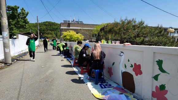 [고령군민신문=이상희기자] 대구시새마을회(회장 최영수)는 4월 30일 쌍림면 백산리 마을회관 주변에 경북대학교새마을동아리 상투스 회원 40여명이 참석한 가운데 벽화 그리기 작업을 추진했다.