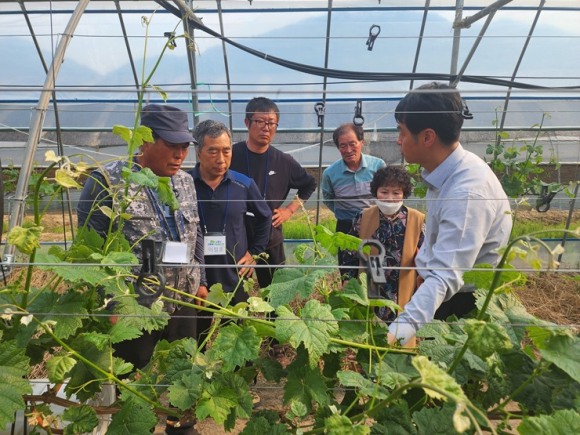 한편 농업기술센터에서는 신규 포도 재배 농가의 성공적인 정착을 위하여 포도 전문 지도사를 초빙하여 교육하고 있다. 4월“월별 포도원 과원관리”, 5월 “화수정리실습 및 생장조정제처리 방법”을 교육하였고, 6월에는 “샤인머스켓 알솎기” 교육을 운영할 계획이다.
