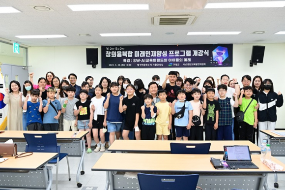 개강식은 창의융복합 미래인재 양성 프로그램 운영 일정 및 과정을 학생 및 학부모와 공유하고, 그 이후 “SW·AI 교육의 트렌드, 챗 GPT와 학교공부”라는 주제로 특강이 이루어졌다.