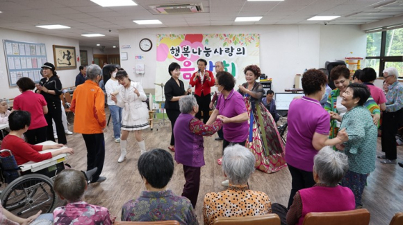 [고령군민신문=이상희기자] 사단법인 한국예술인총연합회 고령군지회(지회장 김권수)가 5월 어버이날을 맞이하여 회원들과 함께 젊은시절 자식들의 온갖 뒷바라지로 심신이 저하되어 부득이 입소 새왈을 하고 계시는 어르신들께 작은 행복을 선사하기 위하여 운수면 신간리에 위치하고 있는 사회복지법인혜성재단 산하 대가야요양원(원장 이장우)을 찾아 “행복나눔 사랑의 음악회" 를 가졌다.