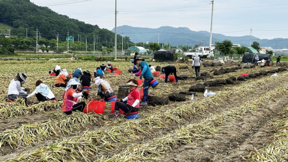 [고령군민신문=이상희기자] 고령농협(조합장 박종순)은 임직원 및 고령농협주부산악회(회장 전숙연)회원등 40여명은 6월1일 농번기를 맞아 일손 부족으로 어려움을 겪고 있는 지역의 마늘농가를 찾아 농촌 일손돕기를 실시하였다.