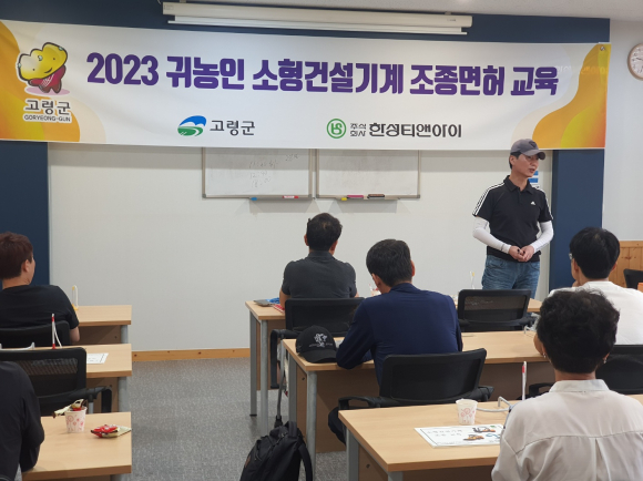 이번 교육은 전문교육 업체인 ㈜한성티앤아이(충남 아산시 둔포면 소재)에 위탁하여 3톤미만의 굴삭기, 지게차, 로더기에 대한 관련 법규와 장비를 구성하는 부품의 명칭, 역할, 작동원리, 운전조작, 취급요령과 고장에 대해 교육을 실시하였다. 이외에도 안전사고 예방요령 등 하루에 6시간씩 총 12시간가량 이론교육과 실기교육을 받으면 교육생들은 3톤미만의 농업용 소형건설기계를 사용 할 수 있는 면허를 받게 된다. 고령군은 농업기계 안전교육을 귀농인 교육시 수시로 해오고 있으며, 2015년부터 현재까지 8회에 걸쳐 면허취득 교육을 추진하여 전문기술을 익혔으며, 163명 전원이 면허증을 취득한 바 있다.