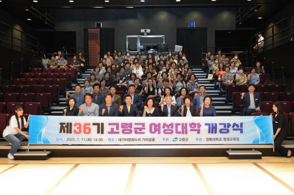 [고령군민신문=이상희기자] 고령군은 2023.7.11.(화) 오후 2시 대가야문화누리 가야금홀에서 84명의 수강생과 이남철 군수를 비롯한 김문재 경북대학교 평생교육원장, 김명국 군의회 의장, 노성환 도의원, 여성단체협의회장, 여성대학총동창회장 등 100여명이 참석한 가운데 『제36기 고령군 여성대학 개강식』을 가졌다.