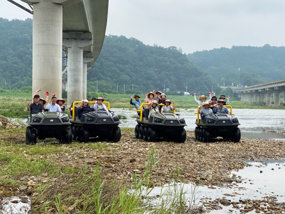 고령군관광협의회, 이색 하천정화활동 펼쳐 ... 수륙양용차(아르고) 활용 ‘수중 쓰레기 수거’