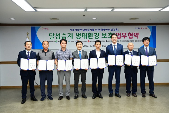 이번 협약식에는 이태훈 달서구청장, 최재훈 달성군수, 박중익 K-water 낙동강보관리단장, 권동욱 한국지역난방공사대구지사장, 박희천 조류생태환경연구소장, 고재극 시민구조봉사단장, 김상민 달서구 자연보호협의회장이 참석했다.