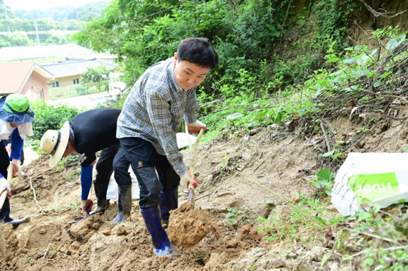 이남철 군수를 비롯한 고령군청 공무원 40여 명은 무덥고 습한 날씨에도 불구하고 25일 영주시 장수면 갈산리와 파지리에 나뉘어 투입되어 구슬땀을 흘리고 있다.