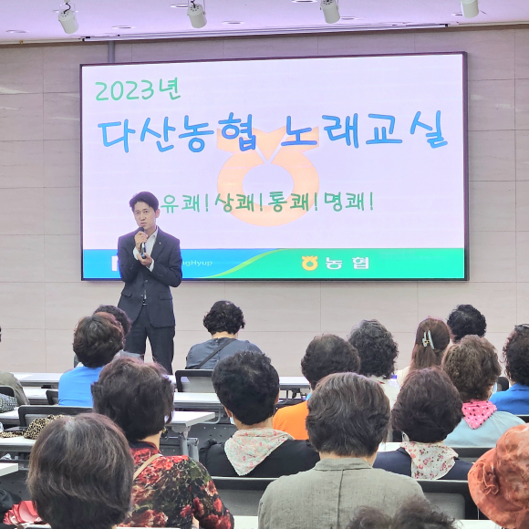 다산농협에서 자체 운영하는「2023년 다산농협 노래교실」은 7월24일 개강하여 9월11일까지 매주 월요일 오후 2시에 웃음인사 나누기, 발성 연습, 율동과 함께 노래하기, 웃음운동 등 다양하고 알찬 프로그램으로 운영 예정이다.