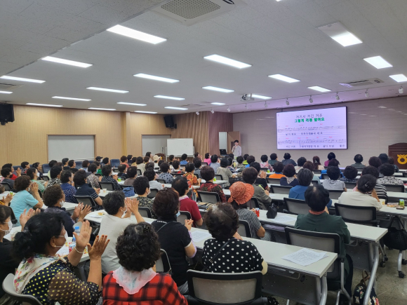 [고령군민신문=이상희기자] 다산농협(조합장 박광보)은 지난 2023.7.24.(월) 오후 1시30분 다산농협 유통센터2층 회의실에서 108명의 수강생과 이남철 군수를 비롯한, 노성환 도의원, 이달호 군의원, 성낙철 군의원, 전용운 다산면장, 이재근 고령군지부장, 다산농협 이춘택 수석이사, 임정배 이사 등 120여명이 참석한 가운데 「2023년 다산농협 노래교실 개강식」을 가졌다.