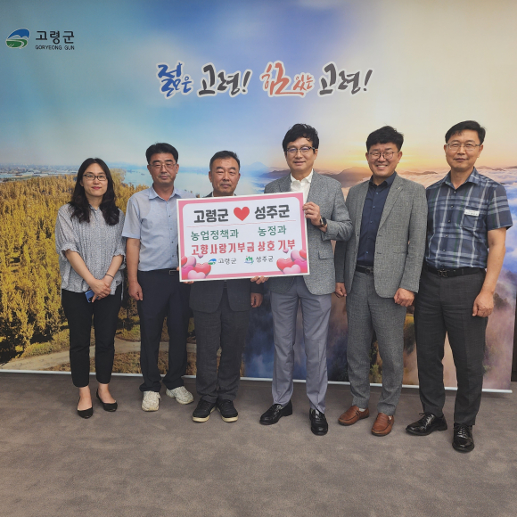 [고령군민신문=이상희기자] 고령군 이원철 부군수와 농업정책과 직원, 성주군(군수 이병환) 서한교 부군수와 농정과 직원들은 성주군과 고령군의 발전과 번영을 응원하는 마음을 담아 고향사랑기부금 각 160만원을 상호기부하였다.