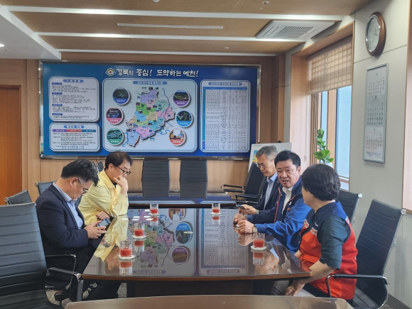 대구경북주물조합 김종태 이사장(중앙회 부회장)께서는 장마와 국지성 폭우로 큰 피해가 발생한 예천군청을 찾아 “긴급 구호물품을 전달하고 수해를 입은 예천군 주민들을 위로하고 조금이나마 도움이 되기를 바라며 빠른시일내 일상을 회복하길 바란다” 고 말했다.