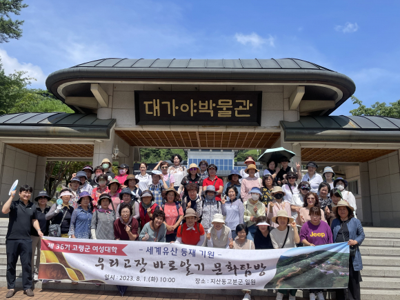 [고령군민신문=이상희기자] 고령군 여성대학 수강생 80여 명은 8월 1일(화) 대가야박물관 및 지산동고분군 일원에서“우리고장 바로알기 문화체험”수업을 진행하였다.