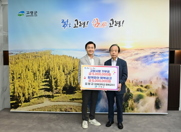 [고령군민신문=이지혜기자] 김형규(경북대학교 명예교수)는 8월 18일 고령군청을 방문하여 「고향사랑기부금」 500만원과 「함께모아 행복금고」성금 500만원을 기탁하였다.