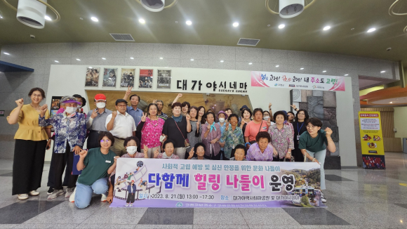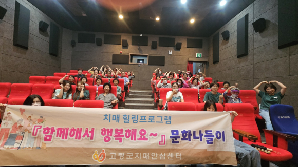 [고령군민신문=이상희기자] 고령군은 8월 21일(월) 치매환자 가족의 부양 스트레스 및 치매보듬마을 주민들의 스트레스 완화 그리고 사회적 고립 예방 및 심신 안정을 위하여 정신건강복지센터 대상자와 “다 함께 힐링 문화체험”을 대가야시네마에서 실시했다.