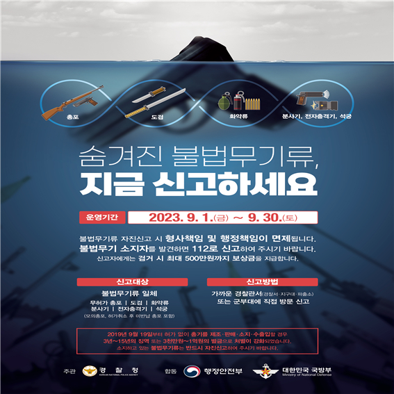 고령경찰서, 9월 한 달 불법무기류 자진신고기간 운영불법 무기류로 인한 테러 및 범죄 가능성 미연에 방지고령군민신문 기자 / kmtoday@naver.com |