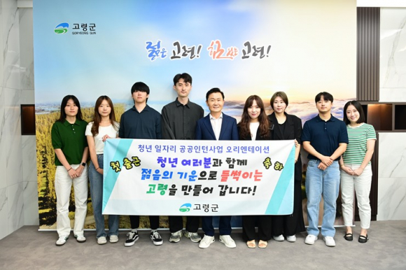 [고령군민신문=이상희기자] 고령군은 9월 1일(금) 군수실에서 청년 일자리 공공인턴사업 오리엔테이션을 개최하고 본격적인 인턴 운영을 시작한다고 밝혔다.