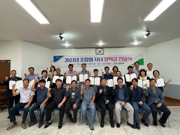 9월 5일 11시 동고령농협 본점 2층 회의실에서 <2023년 동고령농협 조합원 자녀 장학금 전달식>을 개최했다. 동고령농협 조합원 자녀 대학생 15명에게 장학증서 및 장학금 수여식을 갖고 장학금 삼천만원을 전달했다. 이날 조합원 대학생 자녀 임현도(부경대학교 1학년) 외 14명에게 각 200만원씩 각각 전달했다.