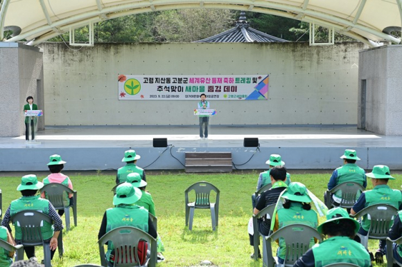 오늘 행사는 새마을 회원들이 다함께 지산동고분군을 트레킹하며 세계유산 등재 확정을 축하하는 시간을 가졌으며, 1시간 정도의 트레킹 일정을 마친 후에는 각 읍면으로 돌아가 추석맞이 줍깅(쓰레기 줍기와 조깅(jogging)의 합성어)을 하며 추석 연휴 귀성하는 가족들을 맞이할 준비를 하였다.